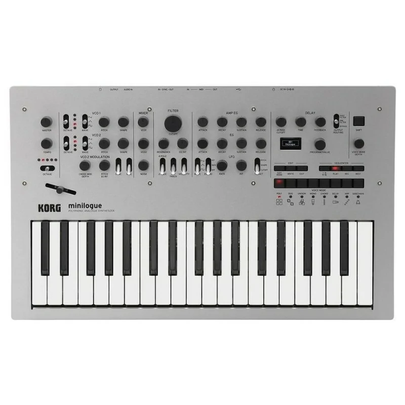 KORG presenta Minilogue, versatile sintetizzatore analogico programmabile, con 4 voci di polifonia. 200 Programmi, Voice Mode, Sequencer polifonico, display OLED con funzioni di oscilloscopio, delay. Interfaccia analogica con 41 controlli dedicati sul pannello comandi. Solida realizzazione con materiali di altissima qualitร . Sintetizzatore con suoni di grande carattere e dinamica, versatile e creativo, dal rapporto qualitร prezzo incredibile. Minilogue adotta una circuitazione analogica di nuova concezione, che consente una polifonia a 4 voci e programmabilitร totale, ad un ottimo prezzo! Esattamente quello di cui ha bisogno ogni musicista al giorno d’oggi. Con minilogue, รจ possibile ottenere il suono potente, tipico della vera sintesi analogica, e trarre ispirazione dalle sue funzioni come lo “Step & Motion” Sequencer, Il Tape-Style Delay incorporato, e le opzioni di modellazione timbrica offerte dal filtro, mentre il Display puรฒ funzionare anche come oscilloscopio. Nonostante la sua potenza tutte queste caratteristiche sono perfettamente integrate, e rendono minilogue divertente e facile da usare. E’ il sintetizzatore analogico di nuova generazione adatto a tutti i generi di musica e a tutti i musicisti.